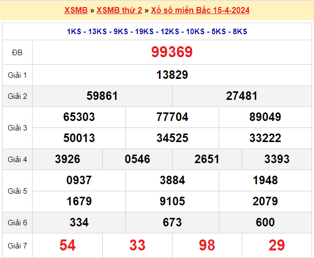 Kết quả Xổ Số Miền Bắc 15-4-2024: