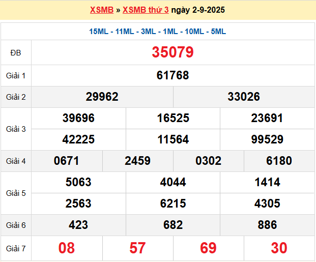 Thống kê bảng KQXSMB ngày 2–9–2025